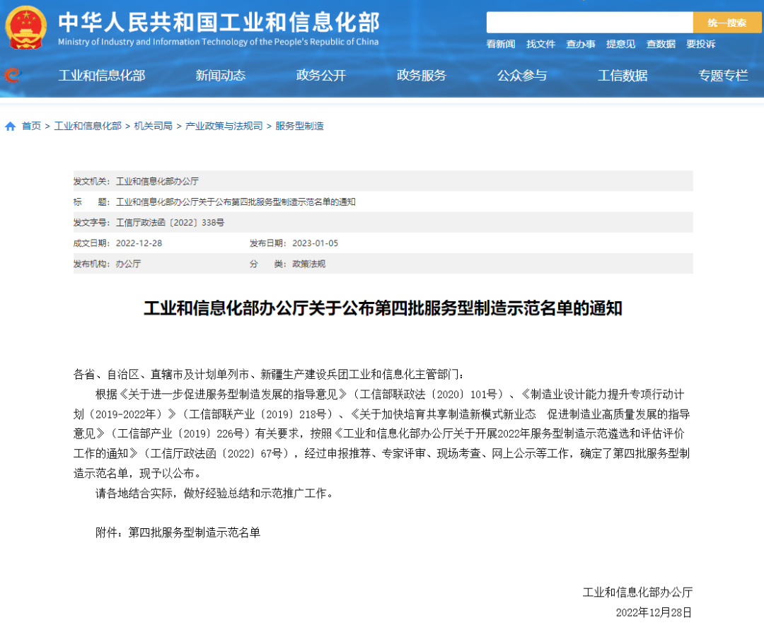 本次企业示范榜单是在2016年提出发展服务型制造专项行动以来,持续优化相关政策下,遴选的第四批示范名单,主要面向定制化服务、供应链管理、检验检测认证服务、全生命周期管理、总集成总承包、节能环保服务、生产性金融服务及其他服务型制造创新模式开展遴选。