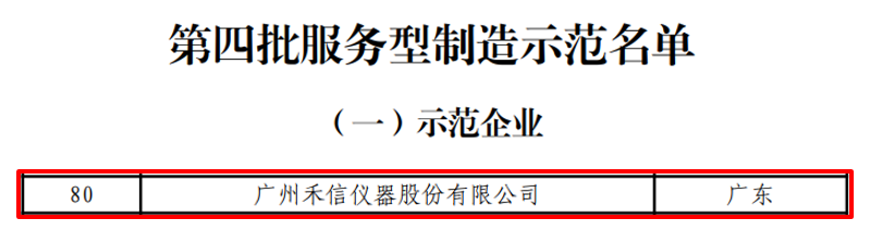 2023年1月5日,工业和信息化部办公厅公布了《第四批服务型制造示范名单》,广东省内有8家(含计划单列市深圳市的2家企业)企业上榜,禾信仪器成功入选该名单“示范企业”。