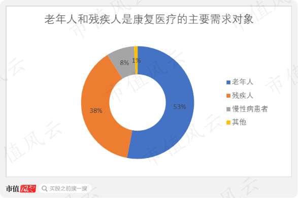据前瞻产业研究院数据,康复医疗的主要需求人群中,老年人需求占比达到53%,残疾人需求占比达38%。