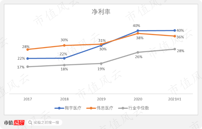 用同行的伟思医疗来进行利润端的对比,可以发现翔宇医疗创造利润的能力一直处于领先水平。