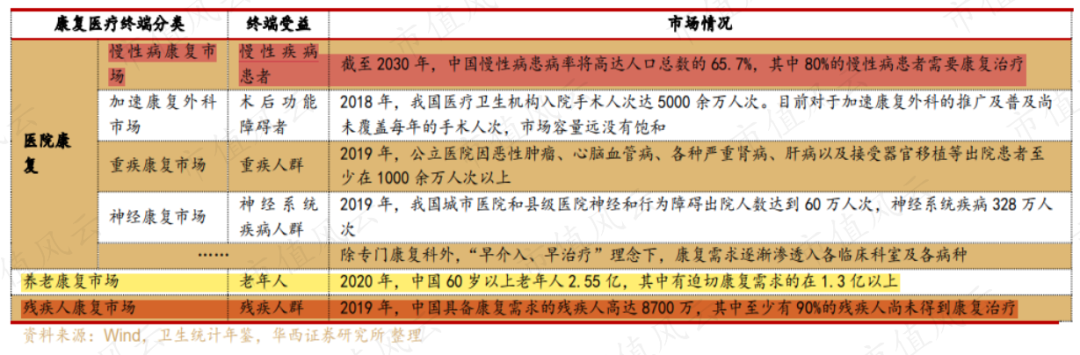 康复医疗行业终端受益者主要涵盖了老年人、慢性疾病患者、残疾人、术后功能障碍者、产后功能障碍者、重疾人群等群体。