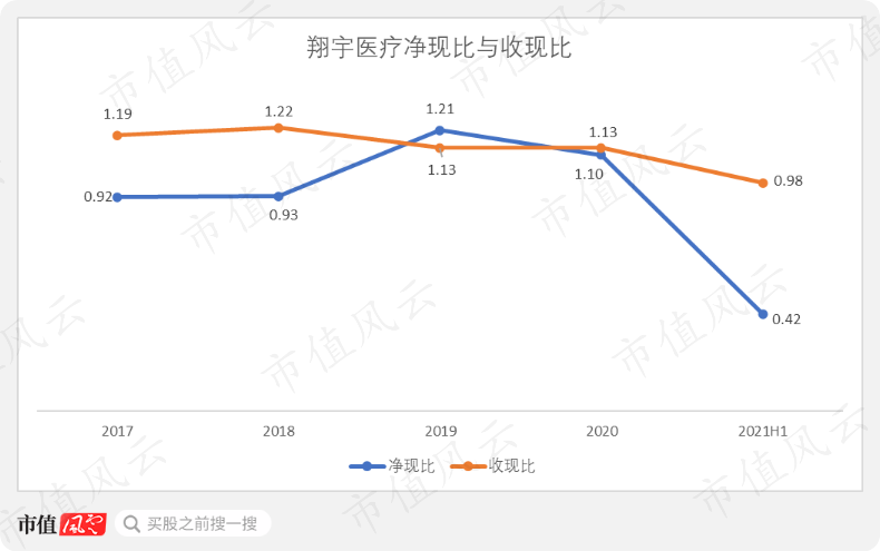 净现比和收现比方面,翔宇医疗大部分保持在1附近。