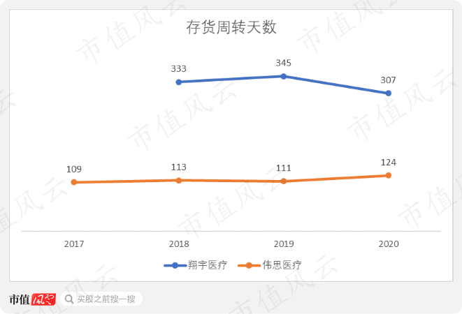 具体拆分来看,主要是由于翔宇医疗的存货周转天数远远高于伟思医疗的存货周转天数。