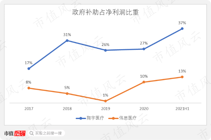 而2021年上半年,翔宇医疗的政府补助进一步上升至37%。
