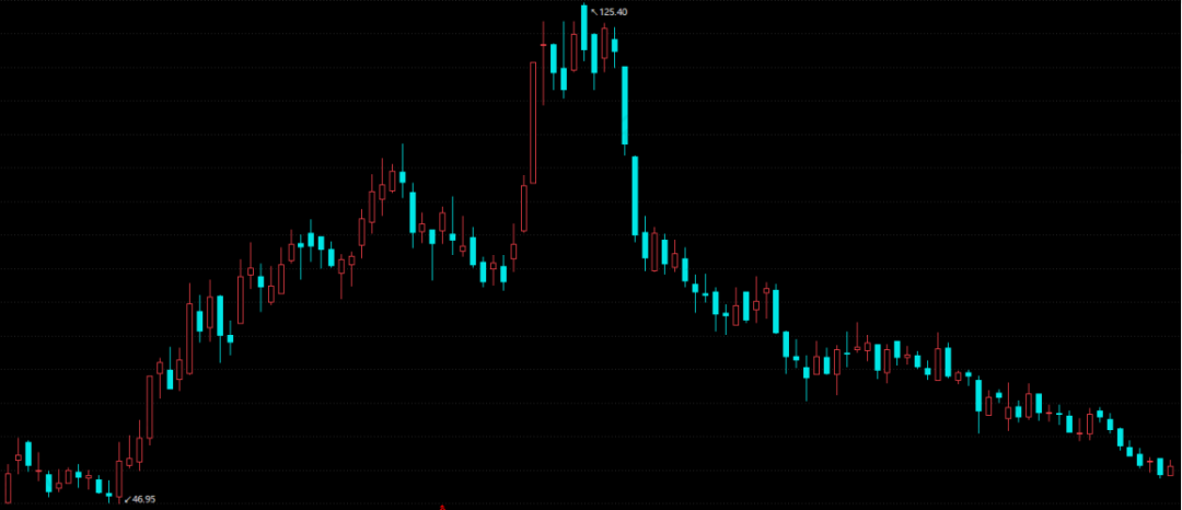 翔宇医疗在2021年3月31号开始上市交易,从4月1号的46.76的股价一路攀升至6月28日的125.4元,7月份开始股价回落,下跌至当前的53元附近。