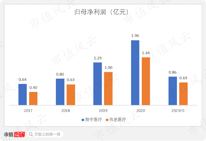 对比同期的伟思医疗,政府补助占其净利润的比重在2017-2020年平均下来约为6%,2021年中报中这一比重上升到13%,但也远低于翔宇医疗。