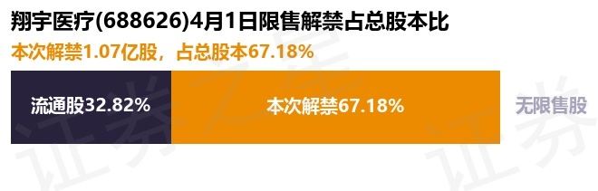 根据市场公开信息整理,翔宇医疗(688626)于4月1日将有1.07亿股限售股份解禁上市,为公司首发原股东限售股份,占公司总股本67.18%。本次解禁后,公司已无限售股份。具体如下图所示: