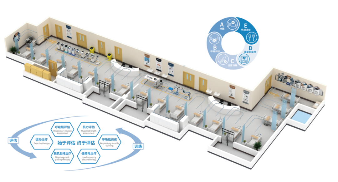 ICU重症康复解决方案:以改善患者功能障碍为核心,以提高患者生活质量为目标,最大限度地维持和改善患者重症期间的功能。通过对重症患者进行早期活动性康复治疗,改善患者肢体功能,降低谵妄等异常精神状态的程度及持续时间,降低机械通气持续时间,降低ICU住院天数等。