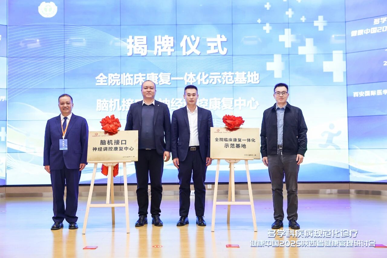 作为大会的一大亮点, 翔宇医疗 与 西安国际医学中心 医院联合共建的“全院临床康复一体化示范基地”与“脑机接口-神经调控康复中心”在会议现场正式揭牌。这两大平台的建立,是双方在康复医学领域深化内涵建设、推动技术创新的重要举措,也标志着医院在践行“临床康复一体化”理念、探索精准智慧康复方面迈出了更为坚实的一步。