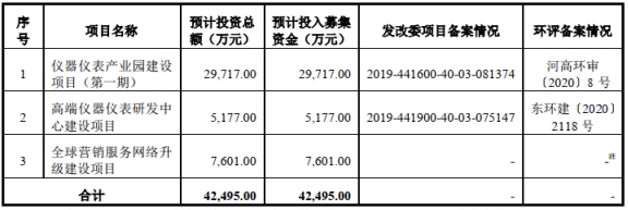 优利德最终募集资金比原计划多5190.95万元。优利德于2021年1月26日披露的招股说明书显示,公司拟募集资金4.25亿元,其中,2.97亿元用于仪器仪表产业园建设项目(第一期),5177.00万元用于高端仪器仪表研发中心建设项目,7601.00万元用于全球营销服务网络升级建设项目。