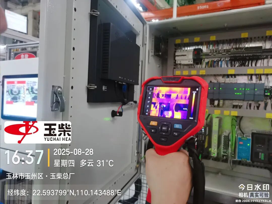 在玉柴动力股份有限公司,优利德主要携UTi640X智能型红外热成像仪深入其生产一线,针对供电系统、温控设备、自动化装置及动力线路等重点设备,进行全面的非接触式温度检测与隐患排查。