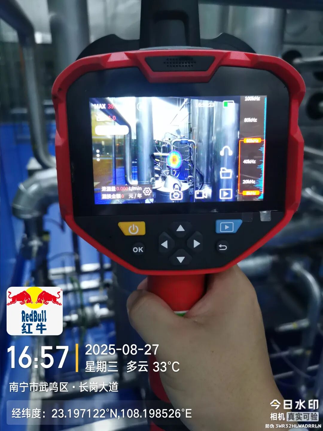 为保障生产系统的安全稳定运行,天丝红牛(广西)饮料有限公司需要定期对其生产线关键设备开展专项巡检。获悉客户需求,优利德携UT568F红外声成像仪深入现场,协助客户全面检测配电箱柜的局部放电隐患、物料储存罐与高压锅炉的气体泄漏情况,以及高温管道系统的热力状态。