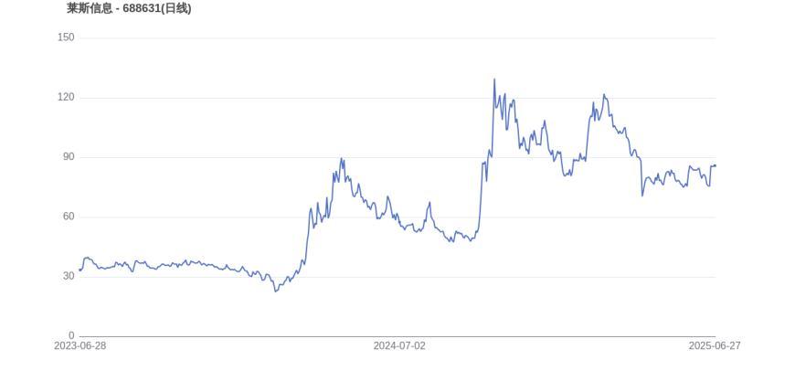 从上市首日至今,莱斯信息的市值实现了1.57倍的增长,显示出资本市场对公司发展前景的认可。2024年10月22日,莱斯信息的市值巅峰达到222.27亿元,股价也顺应升至135.97元。而至6月27日收盘,莱斯信息的股价为85.89元,市值为140.40亿元,相比峰值时期市值减少81.87亿元,市值蒸发了36.83%。