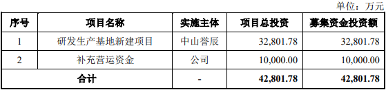 誉辰智能本次发行募集资金总额83,900.00万元,扣除发行费用后,募集资金净额为75,450.71万元。该公司最终募集资金净额比原计划多32,648.93万元。誉辰智能于2023年7月6日披露的招股说明书显示,其拟募集资金42,801.78万元,分别用于研发生产基地新建项目和补充营运资金。