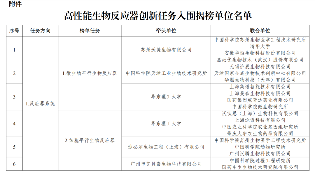 近日,工业和信息化部正式公示了“高性能生物反应器创新任务”揭榜挂帅入围单位名单,安徽华恒生物科技股份有限公司作为联合单位成功入围“微生物平行生物反应器”方向任务榜单。