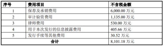 盛邦安全本次公开发行新股的发行费用合计8,101.18万元(不含增值税),其中,保荐及承销费用6,000.00万元。