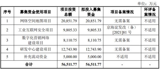 盛邦安全本次公开发行募集资金总额为75,331.20万元,募集资金净额为67,230.02万元,较原计划多10,718.25万元;公司2023年7月21日披露的招股书显示,公司拟募集资金56,511.77万元,计划用于网络空间地图项目、工业互联网安全项目、数字化营销网络建设项目、研发中心建设项目、补充流动资金。