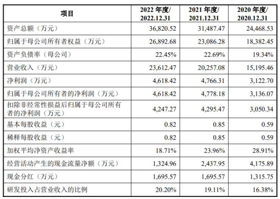 2020年、2021年、2022年,盛邦安全营业收入分别为15,195.46万元、20,257.08万元、23,612.47万元;净利润分别为3,122.70万元、4,766.31万元、4,618.42万元;归属于母公司所有者的净利润分别为3,136.07万元、4,778.18万元、4,618.42万元;扣除非经常性损益后归属于母公司所有者的净利润分别为3,050.34万元、4,295.47万元、4,247.27万元。