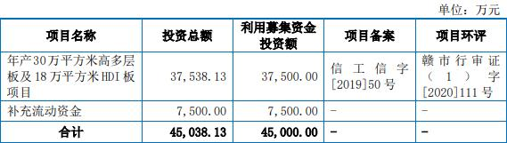 据公司招股书,公司拟募集资金45,000.00万元,用于年产30万平方米高多层板及18万平方米HDI板项目、补充流动资金。