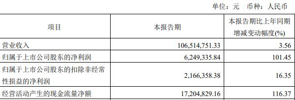 据迅捷兴2023年一季度报告,报告期内,公司实现营业收入1.07亿元,同比增长3.56%;归属于上市公司股东的净利润624.93万元,同比增长101.45%;归属于上市公司股东的扣除非经常性损益的净利润216.64万元,同比增长16.35%;经营活动产生的现金流量净额1720.48万元,同比增长116.37%。