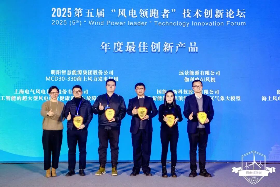 1月8日,由中国风电新闻网主办的2025(第五届)“风电领跑者”技术创新论坛暨颁奖盛典在北京举行。电气风电连续5年参与并获奖,本届论坛中共有6项技术成果斩获“风电领跑者”奖项,涵盖海陆机组及后市场服务等多个领域,全面展现了在风电高端装备与智能化服务方面的综合实力。