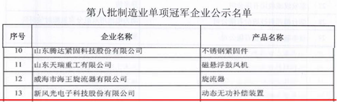 近日获悉,由工信部、中国工业经济联合会组织开展的第八批制造业单项冠军企业遴选工作中,新风光电子科技股份有限公司(简称“新风光”(688663.SH))入围第八批国家制造业单项冠军企业公示名单。