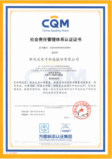 在全球低碳节能的大背景之下,绿色环保意识逐渐成为共识,新风光电子科技股份有限公司一直以来秉持“节约能源,服务社会”的企业愿景,贯彻落实国家绿色低碳循环发展经济体系。2024年5月,新风光正式获得绿色设计产品评价认证、社会责任管理体系、能源管理体系认证证书,彰显出新风光的企业社会管理意识,形成自身的绿色低碳核心竞争优势,切实肩负起了国企节能环保降碳的主体责任。