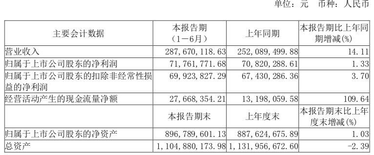 8月29日,四方光电发布2023年半年度业绩报告称,上半年公司实现营业收入为28,767.01万元,同比增长14.11%;归属于母公司股东的净利润为7,176.18万元,同比增长1.33%;扣非后净利润为6,992.38万元,同比增长3.7%;基本每股收益为1.03元,同比增长1.98%。