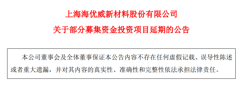 3月4日,海优新材发布公告称,将可转债募集资金投资项目之一的“年产2亿平方米光伏封装胶膜项目(一期)”达到预计可使用状态的时间由原计划的2024年3月延期至2025年9月。