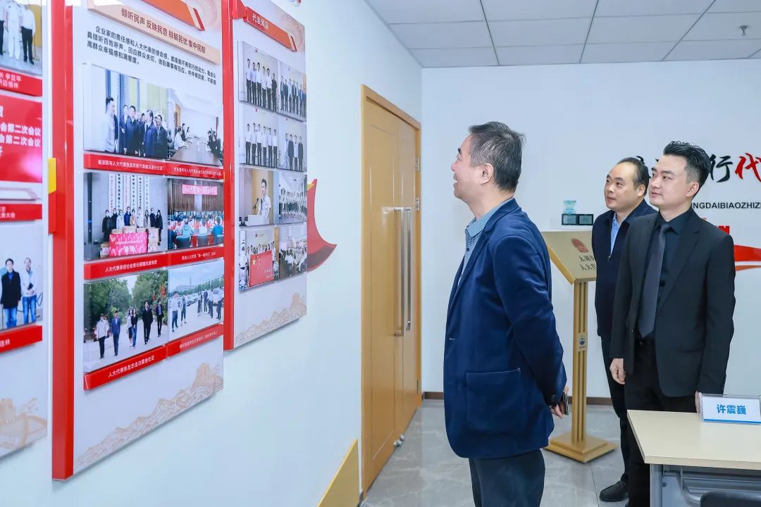 揭牌仪式结束后,代表们一起参观了公司“人大代表联络站”,董事长张友志对企业人大代表联络站筹建情况进行介绍。