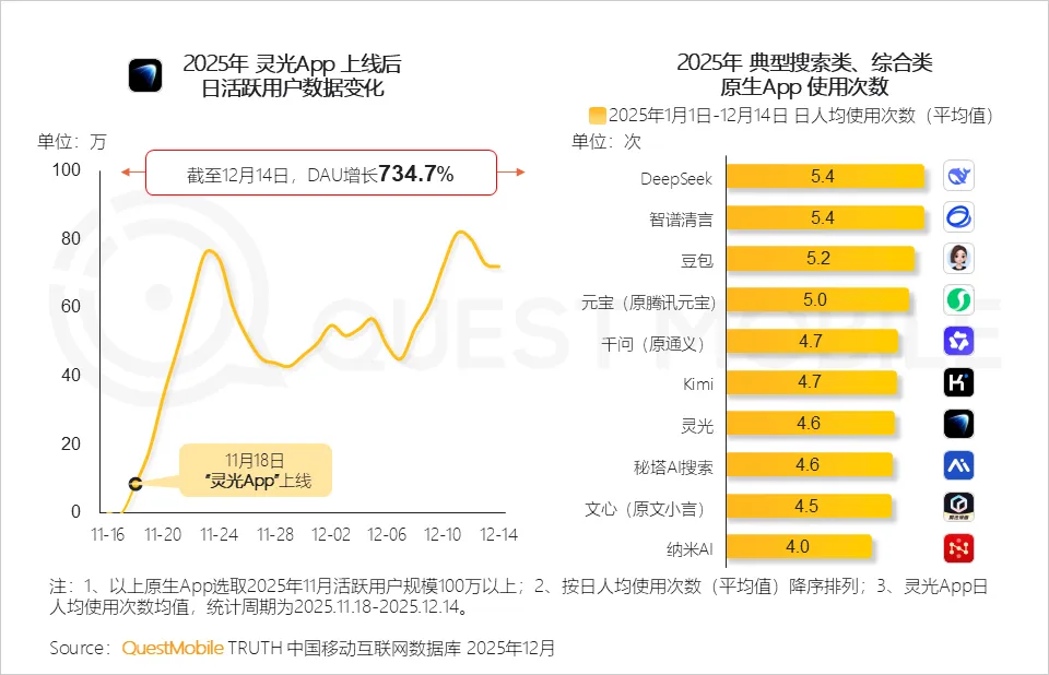 作为蚂蚁集团推出的新一代全模态通用 AI 助手,灵光 App 于 2025 年 11 月 18 日正式上线,以“让复杂变简单”为核心理念,凭借全代码生成多模态内容的核心优势,融合语言、图像、语音与数据的理解与生成能力,支持 3D、音频、图表、动画、地图等多模态信息输出,构建起“灵光对话、灵光闪应用、灵光开眼”三大核心功能矩阵。其中,灵光闪应用作为独具创新的核心功能,极致降低了应用开发门槛,用户无需任何编程知识,仅通过自然语言描述需求,最快 30 秒即可生成一个可交互、可编辑、可分享的日常小应用,彻底打破传统开发模式的局限,让每个人都能成为 AI 创作者,精准解决生活中具体而微小的需求。上线后,产品呈现爆发式增长态势,6 天总下载量突破 200 万,首次破百万用时 4 天,第二个百万仅用 2 天,增速领跑全球 AI 产品。