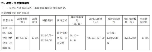 公告显示,减持前华杰投资合计持有公司股份22,328,549股,占公司普通股总股本5.58%,本次减持后持有股份11,532,818股,占公司普通股总股本比例为2.86%。