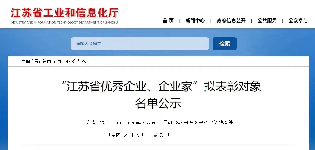 近日,江苏省工业和信息化厅、江苏省人力资源社会保障厅、江苏省工商业联合会,以省委、省政府名义在全省评比表彰了一批江苏省优秀企业和企业家。