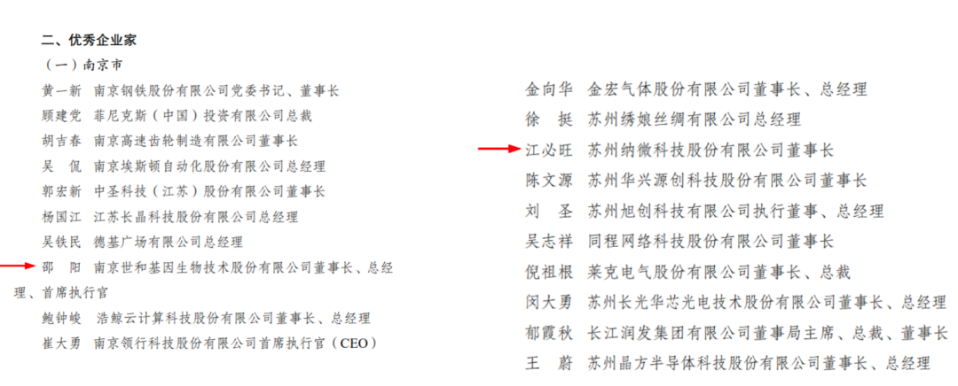 (江苏省优秀企业家名单截图)