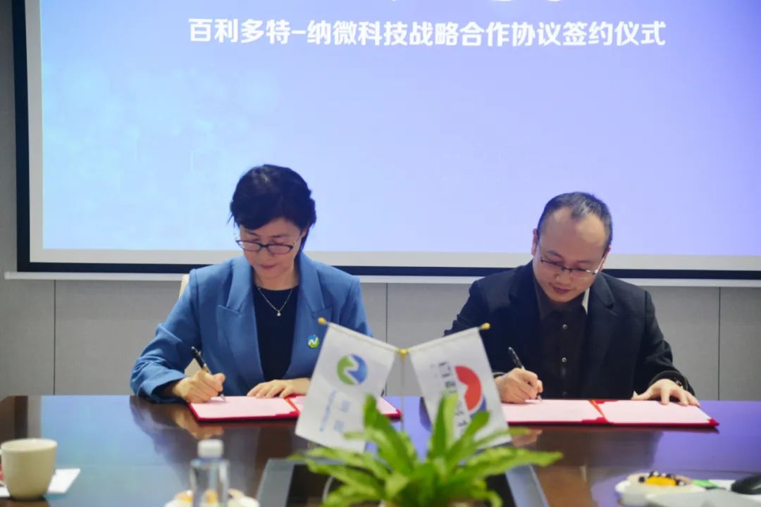 2024年1月17日,成都百利多特生物药业有限责任公司(以下简称“百利多特”)与苏州纳微科技股份有限公司(以下简称“纳微科技”)达成战略合作。纳微科技总经理牟一萍女士与百利多特总经理卓识先生及双方代表出席签约仪式。结合彼此优势,双方将紧密合作,助力恶性肿瘤、创新型多特异性抗体药物及ADC药物等。
