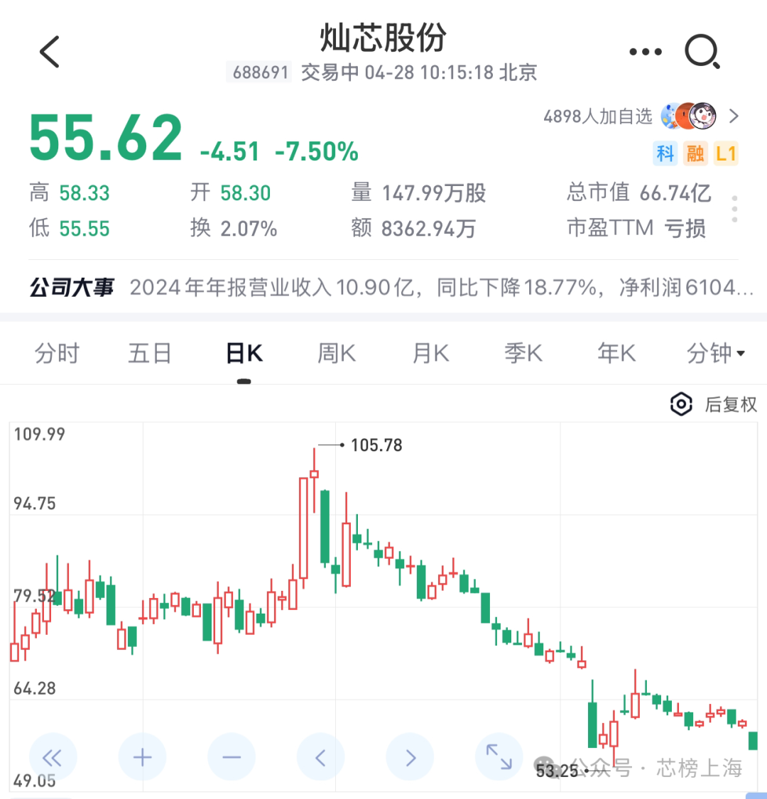 2024 年至 2025 年一季度,灿芯股份上演了一场惊心动魄的业绩“跳水”大戏。2024 年营收从 13.41 亿元骤降至 10.90 亿元,跌幅达 18.77%;归母净利润更是从 1.70 亿元断崖式下跌至-6104.72 万元,降幅高达 64.19%,亏损的黑洞无情吞噬着曾经的辉煌。到了 2025 年一季度,这场危机进一步恶化,营收直接腰斩,暴跌 59.23%,归母净利润从盈利 5569 万元瞬间坠入亏损 2581 万元的深渊,如同被重锤击中要害,元气大伤。