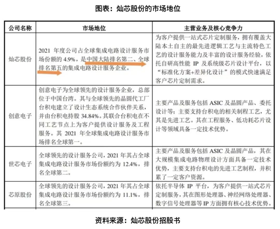 招股书显示,2021年,灿芯股份在全球芯片设计服务领域占据重要席位,不仅位列中国内地第二,更跻身全球前五,其市场地位可见一斑。
