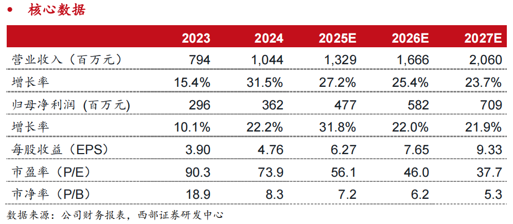 公司发布2024年年报。2024年,公司实现营业收入10.44亿元,同比增长31.49%;实现归母净利润3.62亿元,同比增长22.22%;实现扣非净利润3.41亿元,同比增长24.14%。