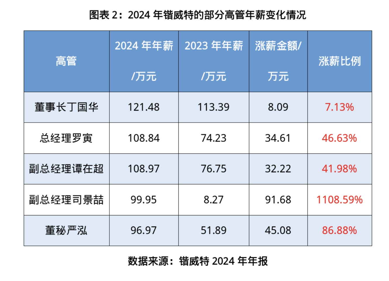 值得一提的是,尽管业绩下滑,锴威特的多位高管却逆势涨薪。