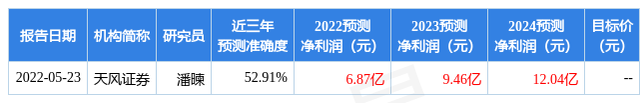 证券之星数据中心根据近三年发布的研报数据计算,天风证券潘暕研究员团队对该股研究较为深入,近三年预测准确度均值为52.91%,其预测2022年度归属净利润为盈利6.87亿,根据现价换算的预测PE为28.85。