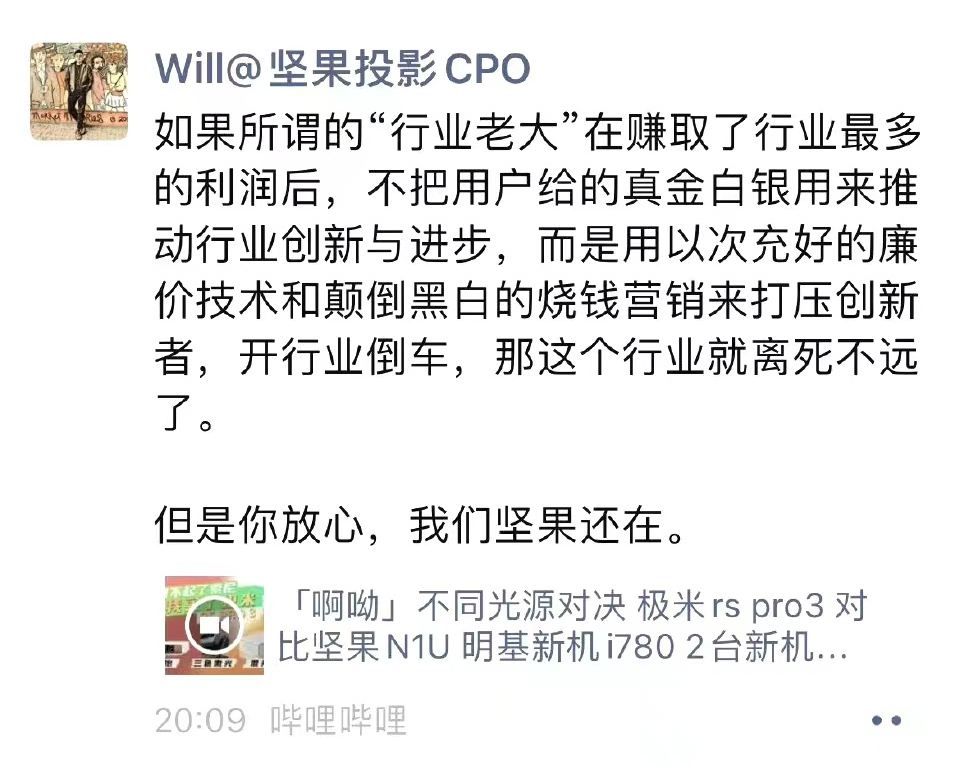 有网友认为,极米的反悔行为可能是因为之前所声称的实证不足,无法支持其对竞争对手的打压和指责。