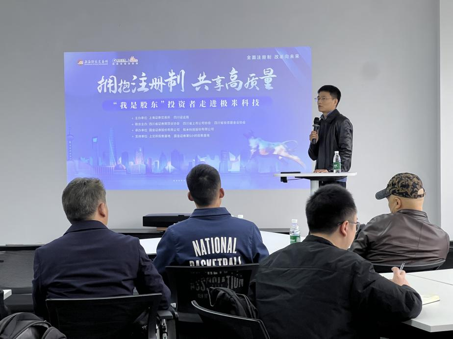 日前,上交所联合国金证券组织开展“我是股东”走进上市公司活动,带领投资者走进国家级专精特新“小巨人”企业——极米科技。本次活动由上海证券交易所、四川证监局主办,四川省证券期货业协会、四川省上市公司协会、四川省投资基金业协会联合主办,国金证券、极米科技承办,共有12名中小投资者以及来自国金证券的工作人员参加。