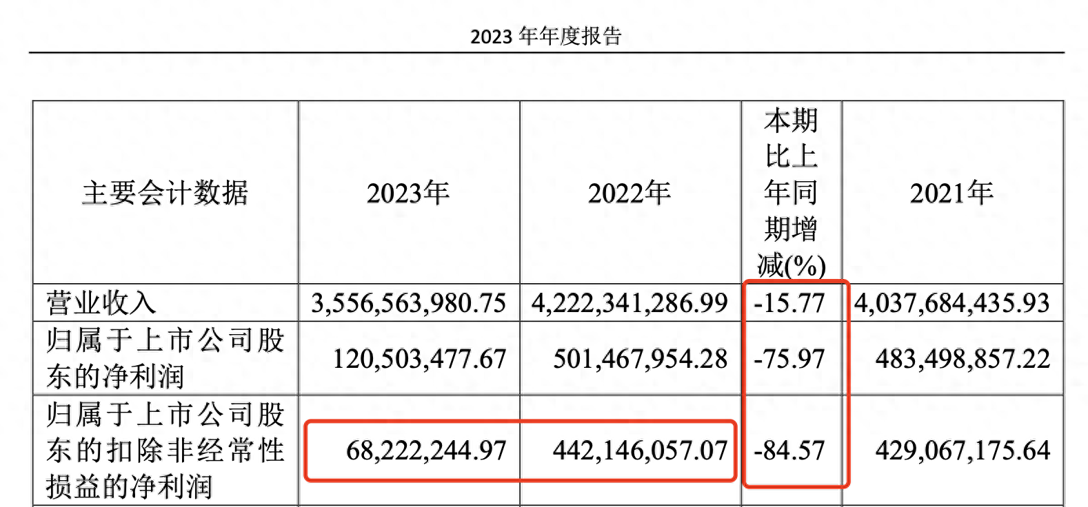 在登陆A股市场三年之际,昔日明星公司极米科技(688696)2023年业绩却出现“变脸”,营业收入及净利润双双出现同比大幅下滑,扣非净利润直接从2022年的超4亿元暴跌到仅剩不到7000万元。