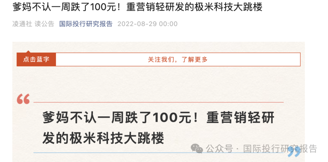 4、早在2022年,凌通社就发表过“爹妈不认一周跌了100元!重营销轻研发的极米科技大跳楼”的报告,没想到极米科技在这条路上走的越来越远。而在业绩下滑的预期之下,加上百度乘风归去,留下的可能只有韭菜了。!