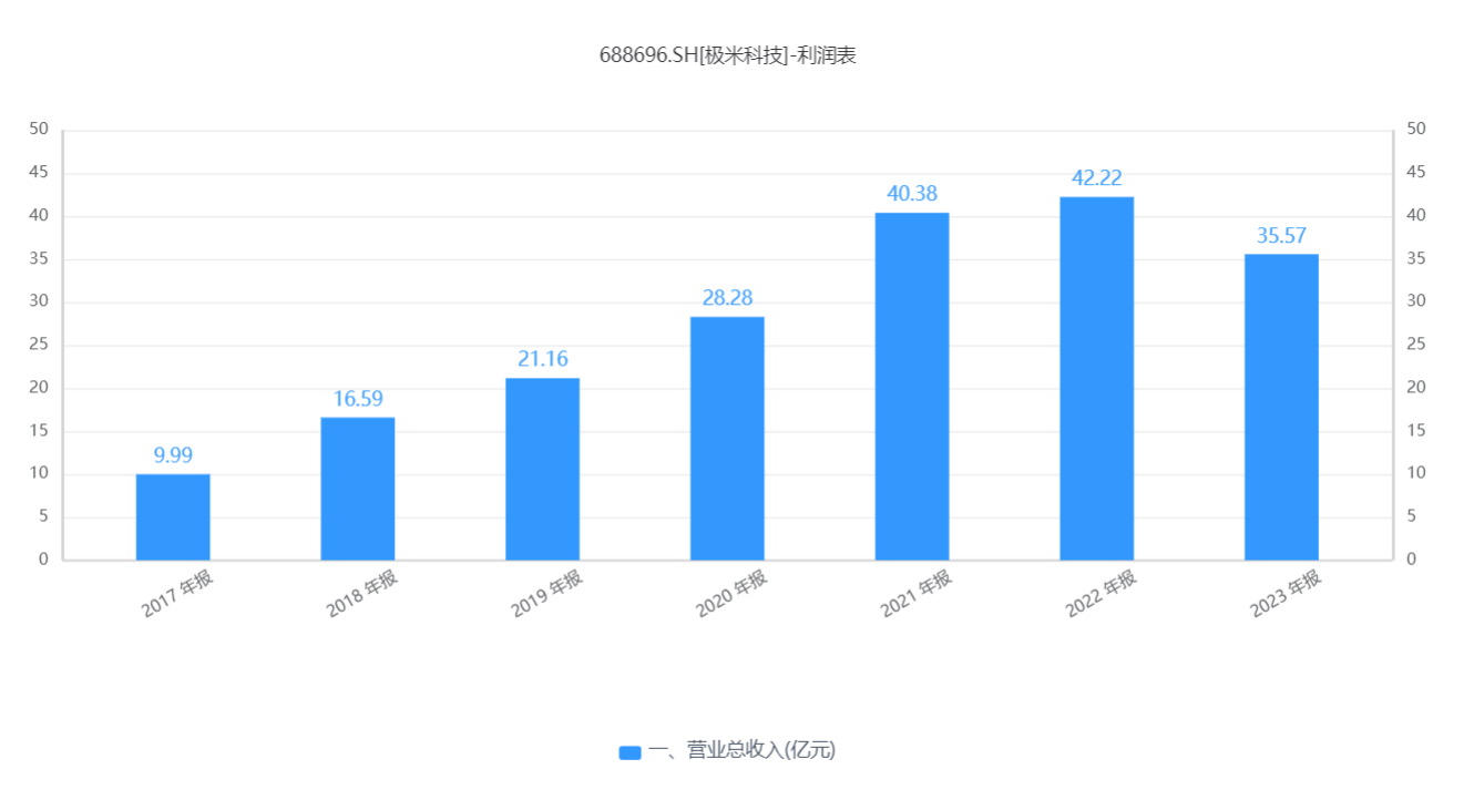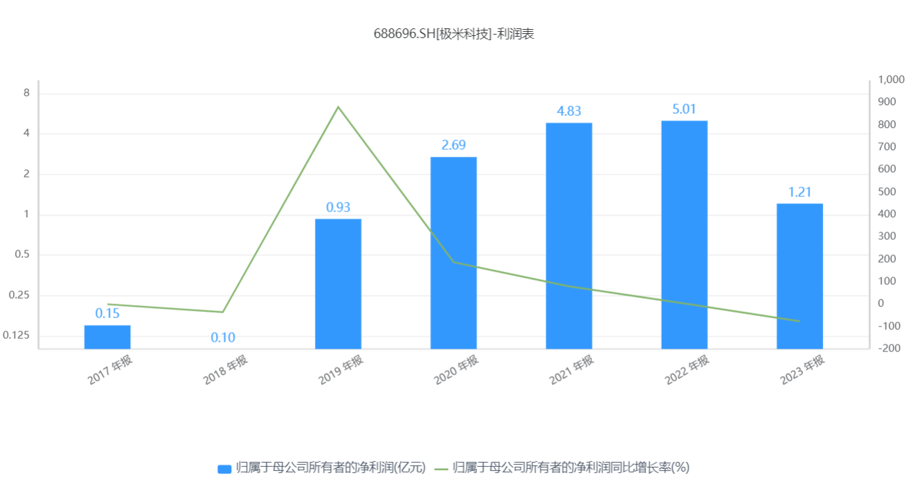 在股价持续下跌的背景下,极米科技公司的业绩表现反映出其存在深层次的问题。观察其IPO前后的情况,我们发现,虽然公司在IPO之前实现了显著的业绩增长,但在IPO后的两年里,其业绩增长速度开始放缓,并出现了增收不增利的现象。更为严重的是,到了第三年,公司的业绩出现了大幅度的下滑。