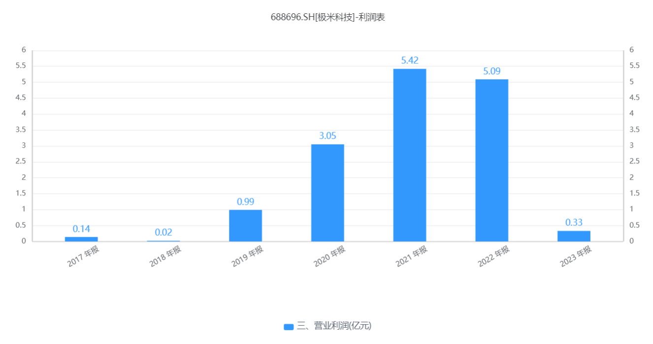 上市第三年,极米科技的业绩便开始大幅下滑,同时面临存货积压。数据显示,2023年极米科技营业利润仅为0.30亿,同比下降了94.05%。