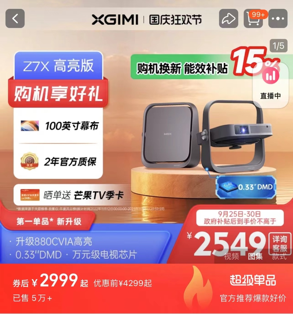 电商平台显示极米升级款投影仪优惠后价格不超过2549元