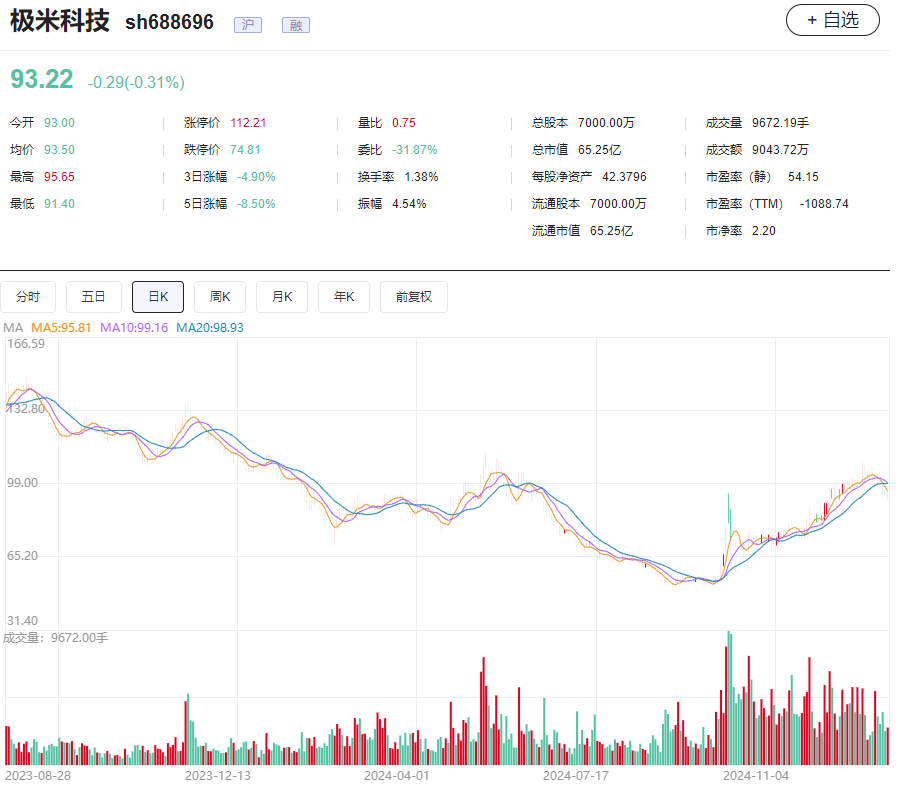 极米科技作为行业龙头,上市时受到资金热捧,发行价格高达133.73元/股,上市首日开盘价达511.11元/股,收盘价530.01元/股,并在3个月内一度达到最高的超885元股。但是此后,该公司股价便震荡下跌。截至今年1月6日收盘,公司股价仅为93.22元/股,总市值65.25亿元。