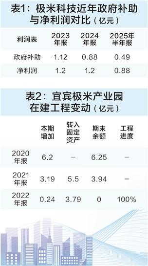 总体来看,宜宾极米产业园实际投资不足10亿元,全额获得了超8亿元的政府补助。项目投产后,其实施主体宜宾极米虽营收规模庞大,多次超过上市公司合并报表营收,但在上市公司整体盈利的背景下,自身盈利能力却始终薄弱,未对当地税收形成有效贡献。