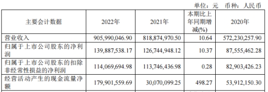伟创电气2022年年度报告显示,2022年度,公司实现营业收入9.06亿元,同比增长10.64%;归属于上市公司股东的净利润1.40亿元,同比增长10.37%;归属于上市公司股东的扣除非经常性损益的净利润1.14亿元,同比增长0.28%;经营活动产生的现金流量净额1.80亿元,同比增长498.27%。
